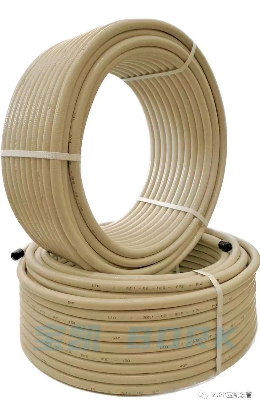不锈钢软管披覆PVC包层,“ 燃气输送用金属软管 ” 打字印刷。