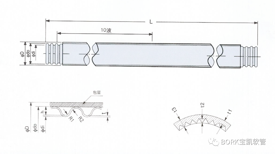 管体采用SUS304或SUS316L不锈钢,经20年以上的成熟找术成型,在高温处理下,使管体柔软并强化内部结构。
