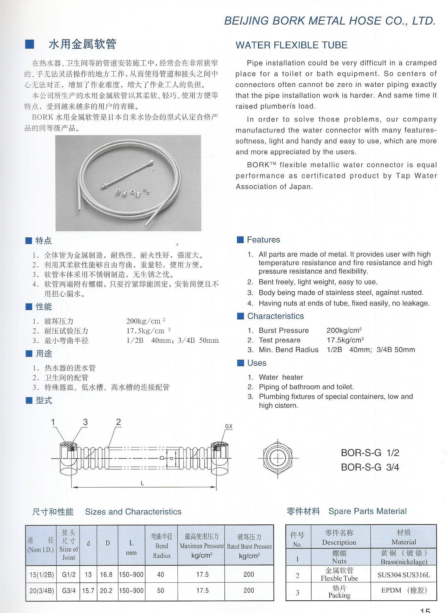 BORK水用金属软管是日本自来水协会型式认定合格产品的同等级产品。